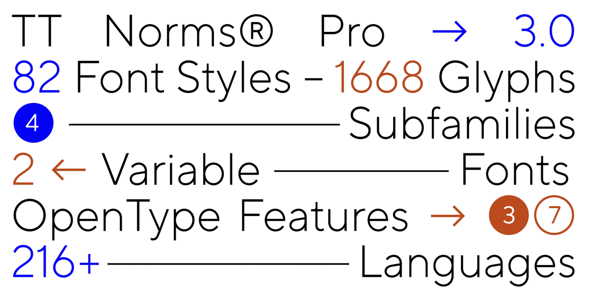 TT Norms® Pro - один из наиболее популярных шрифтов в коллекции TypeType. За 7 лет было выпущено более трех обновлений, он занимает первые места на MyFonts, получил десятки кастомизаций и положительных отзывов.