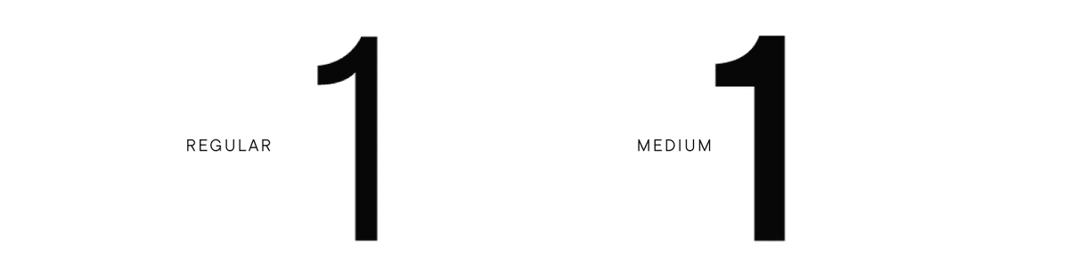 ‣ Различные начертания меняли форму некоторых знаков, например, цифра 1 в более тонком стиле Regular выглядела иначе, чем в Medium.