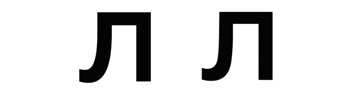 ‣ Некоторые глифы претерпели изменения по сравнению с оригиналом, например, форма кириллической буквы "л" стала менее плавной в повороте.