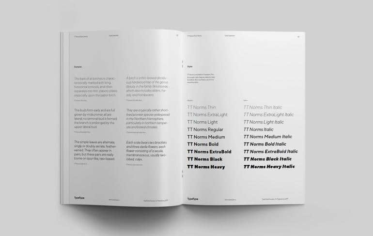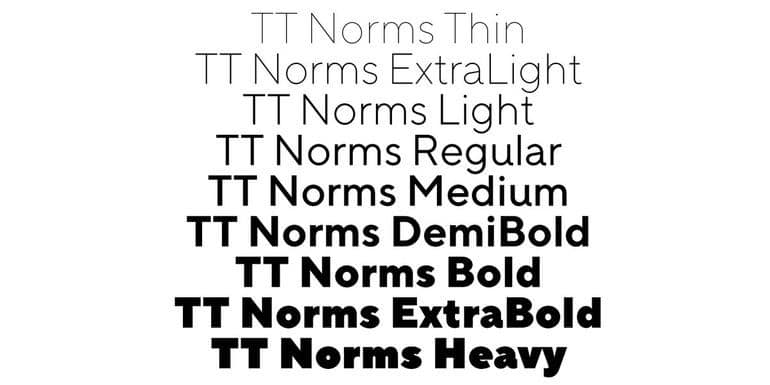 В мае 2017 года была завершена первая версия TT Norms®. Мы опубликовали проект на различных платформах.TT Norms 2017 года представляет собой 18 начертаний: 9 обычных (Тонкий, Очень легкий, Легкий, Обычный, Средний, Полужирный, Очень полужирный, Черный, Тяжелый) и 9 соответствующих им курсивов. Исходный набор символов первой версии шрифта составлял 530 глифов для каждого начертания. В дальнейшем количество глифов увеличится более чем в три раза!