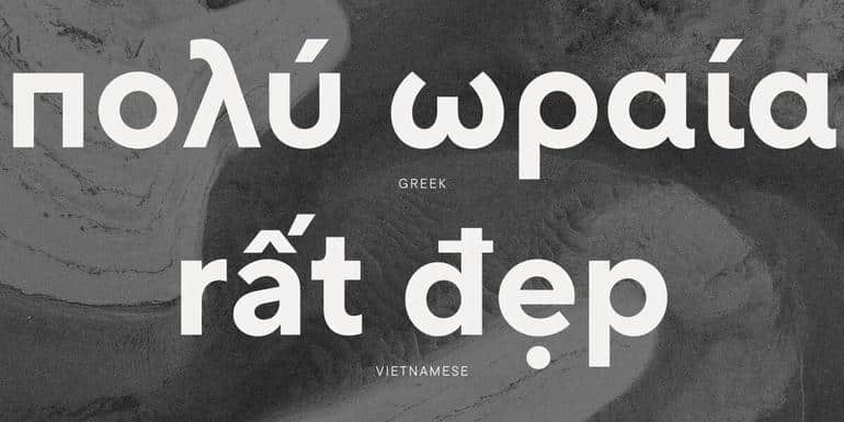Было выполнено полное перерисование, включая вьетнамскую диакритику. Использование вьетнамского языка в наших шрифтах не является частым явлением, поэтому нам не хватало опыта в создании вьетнамского алфавита. Пришлось провести обширное исследование языка и его истории, чтобы понять, как он должен выглядеть. В результате мы разработали методики и получили понимание того, как можно улучшить вьетнамский язык в шрифте TT Norms® Pro. Оказалось, что все символы основаны на уже созданных нами знаках латинского или расширенного латинского алфавита, а ключевой особенностью вьетнамского языка является сложная диакритика.
