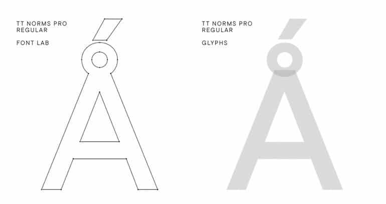 Другими словами, мы отказались от укороченных версий в пользу более полной, включающей в себя все предыдущие разработки. Нам нужно было взять уже нарисованные символы и добавить недостающие, чтобы создать одно обширное семейство TT Norms® Pro в версии 3.0.Для каждого стиля теперь доступно 1668 уникальных знаков. При переходе на новую программу нам пришлось вручную создавать не все символы, а только основные шаблоны. Всего было 32 основных шаблона, что все равно оставалось значительным количеством. Работа в едином файле шрифта стала необходимостью для создания идеального вариативного стиля для пользователей.