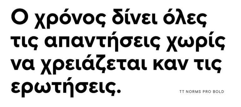 Приведу другой пример — греческий алфавит. После внимательного изучения версии 2.140, мы решили провести редактирование. После проведения исследования, мы выявили необходимые изменения: коррекция толщины, улучшение форм. Хотя изменения не были столь радикальными, как в случае с вьетнамским языком, все же пришлось перерисовать каждый символ 16 раз в обычном начертании, а затем еще столько же в курсиве. В целом, работа была объемной. Кстати, TT Norms® Pro — единственный шрифт в нашей коллекции, который включает греческий алфавит.