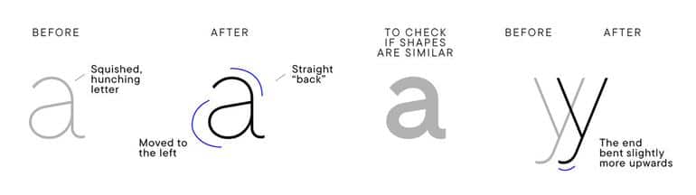 ‣ Нужно было привести все межбуквенные просветы лигатур к единому виду, чтобы достичь визуальной гармонии.