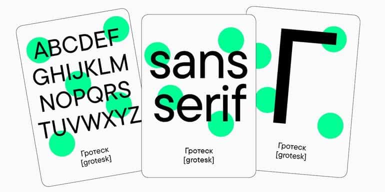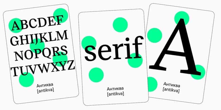 Существует множество различных стилей шрифтов, но давайте рассмотрим наиболее популярные: гротески, антиквы и шрифты с засечками.