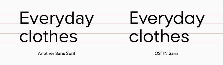 Интерлиньяж - это настройка вертикальных метрик шрифта. При взаимодействии с командой O’STIN было принято решение согласовать вертикальные метрики с шрифтом, который использовался ранее в большинстве материалов бренда. Это позволит дизайнерам легче обновлять шрифт, так как верстка не будет полностью нарушена, что позволит вносить коррективы, а не создавать все заново. Таким образом, новый шрифт, несмотря на свою уникальность, сохраняет техническую совместимость с предыдущим. Это особенно важно при работе с веб-сайтом и мобильным приложением, так как переработка такого объема интерактивных материалов потребует значительных дополнительных затрат.