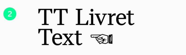 TT Livret - это новейшая антиква, включающая в себя текстовое, подзаголовочное и дисплейное семейства шрифтов, объединенные в одно обширное семейство.