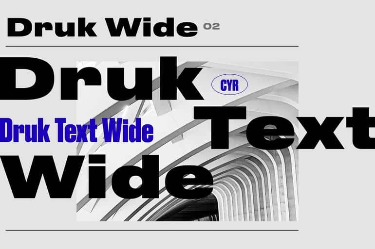 Шрифт Druk Text Wide был создан дизайнером Бертоном Хасебе, который всегда открыт для новаторских идей и стремится к творчеству. Этот простой и смелый шрифт требует правильной организации иерархии. Сохраняя свою уникальность на протяжении многих лет, Druk Text Wide стал одним из самых узнаваемых шрифтов среди профессиональных дизайнеров. В нем представлены четыре начертания, от обычного до экстра-жирного, а также курсивный стиль.